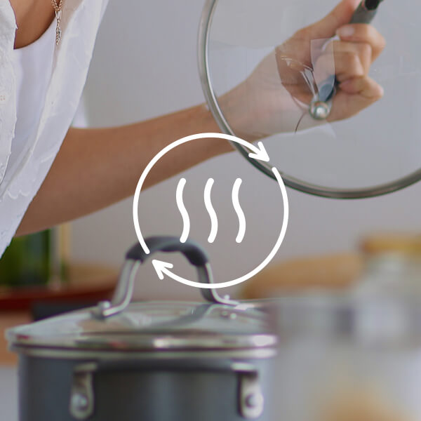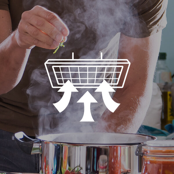 Skorzystaj z funkcji Booster, gdy potrzebujesz szybko usunąć większe ilości oparów, na przykład tuż po otwarciu pokrywy garnka. Funkcja Booster czasowo zwiększa moc pracy okapu do maksimum.